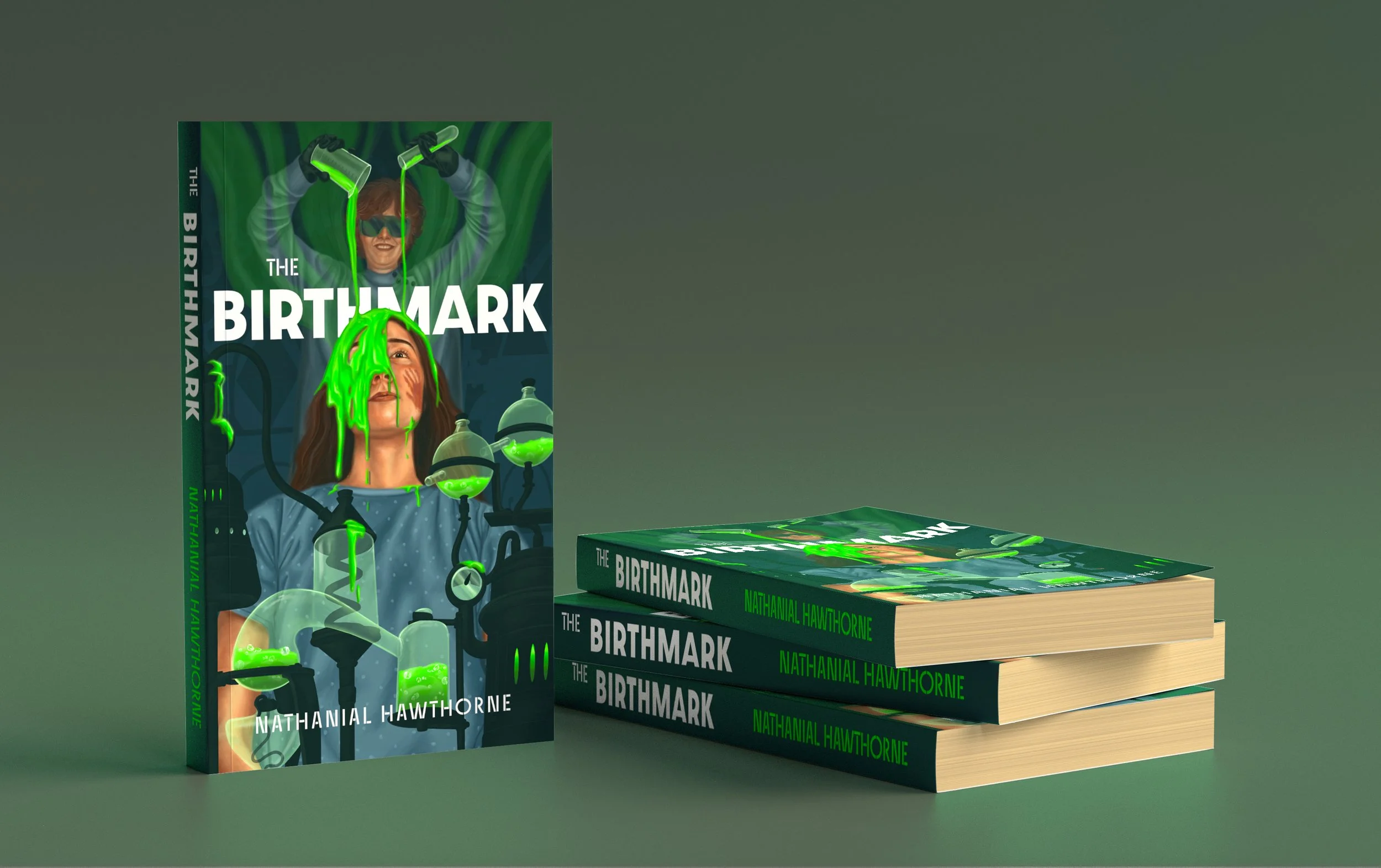 Based on Nathaniel Hawthorne's writing, "The Birthmark", I created a book cover to portray the story. With themes of obsession, the strive for unattainable perfection, and the fight between science and nature, it was beautifully written.